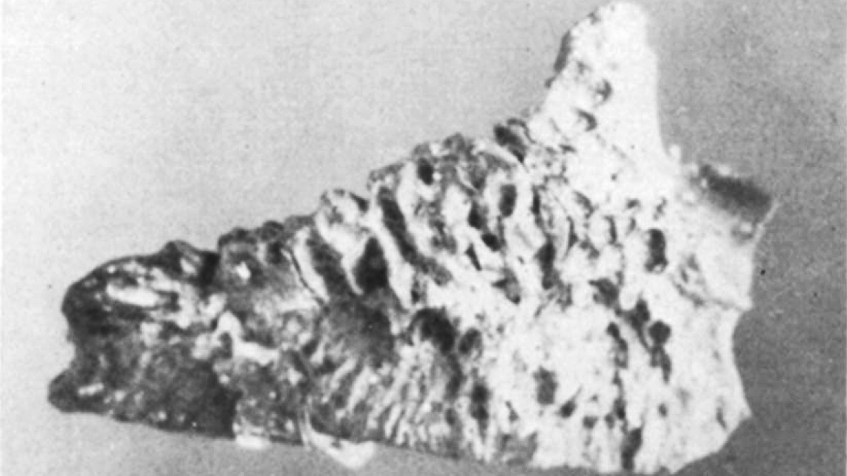 Fossil frontoparietal of A. rexroadensis, (UMMVP 40139) Blancan, Kansas, holotype specimen (actual length 12.4 mm) (Tihen, 1962; Figure 55)