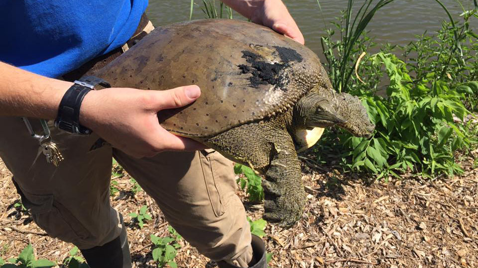 Contains a photo of a submerged Apalone spinifera from the Verdigris River in Chase County, Kansas.