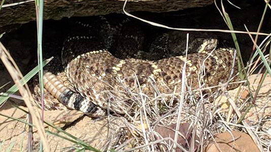 An adult Western Diamond-backed Rattlesnake observed in southern Barber County. © Keith Yearout, 2019.