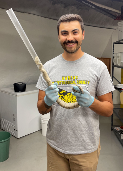 One of his most relevant contributions includes assisting in the growth, maintenance, and public education of the Sternberg Museum’s zoological collection. He attended Fort Hays State University for his undergrad (2017-2021) and conducted natural history and ecology research on terrestrial herps and aquatic turtles inhabiting the Dr. Howard Reynolds Nature Trails in Hays, KS. Alexander presented this research at many annual meetings during his undergrad. He continues to be an active member of the KHS.